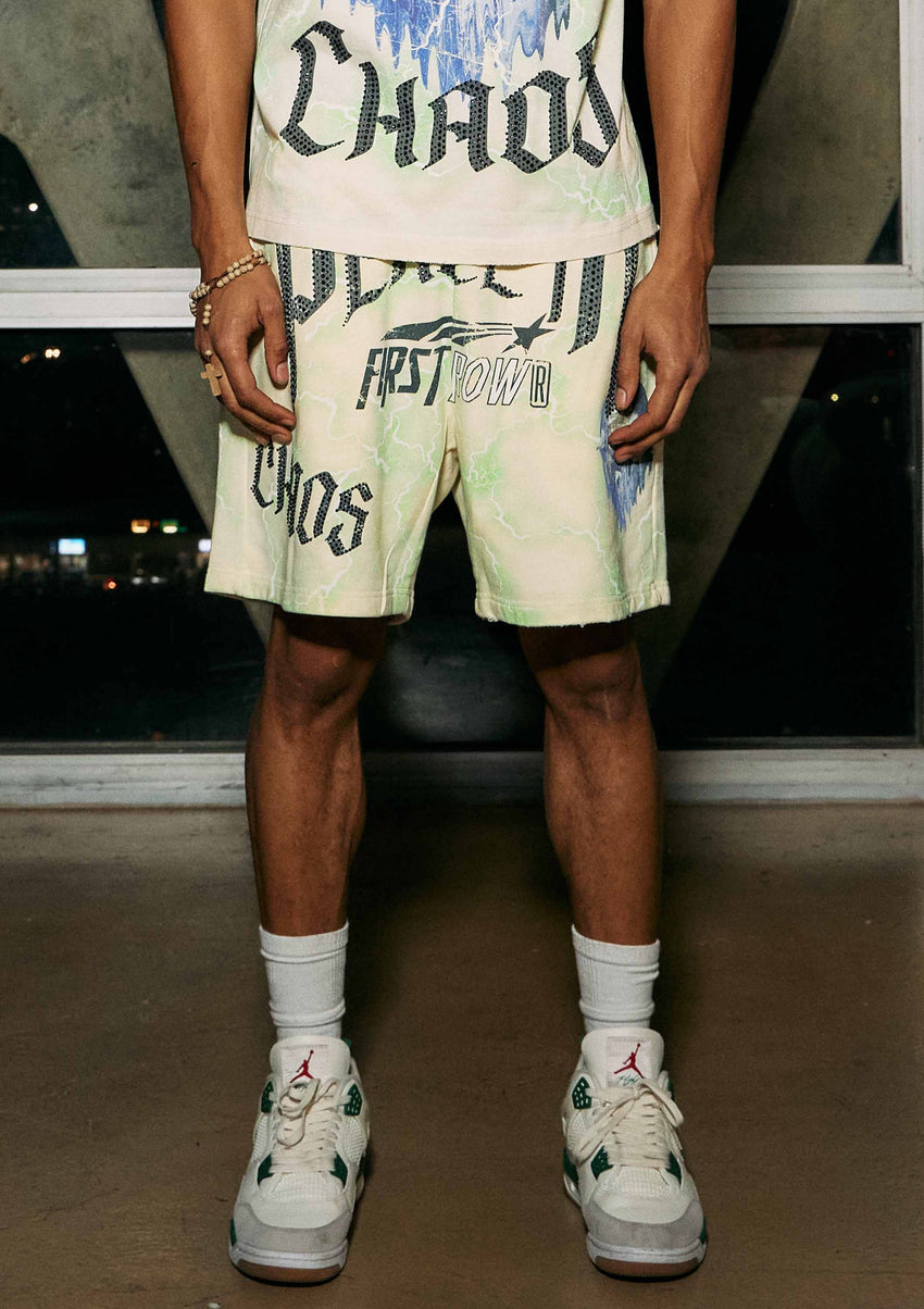 First Row - PEACE IN CHAOS LIGHTNING SHORTS